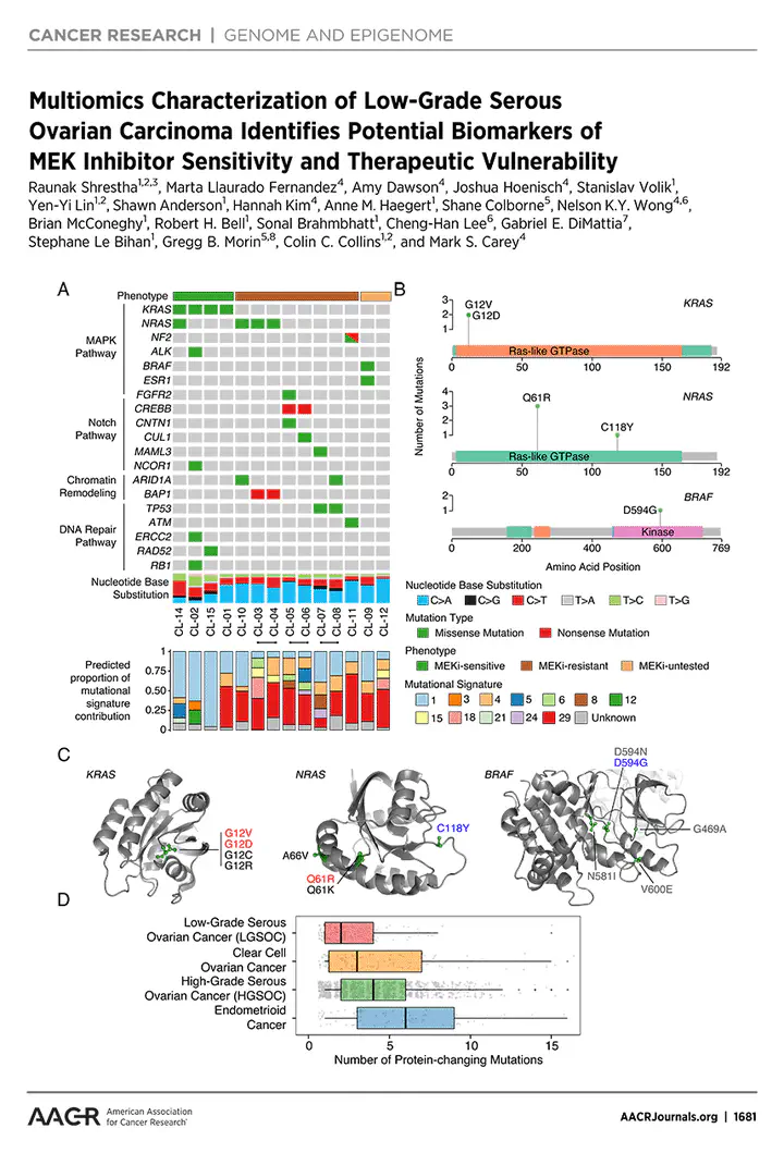 Multiomics Characterization of Low-grade Serous Ovarian Carcinoma Identifies Potential Biomarkers of MEK-inhibitor Sensitivity and Therapeutic Vulnerability